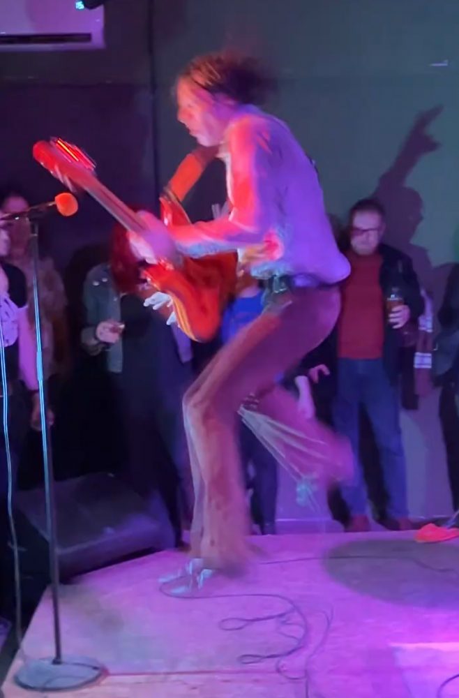 Musikalisch geht es deutlichst ins Fahrwasser von Bands wie MC5, sogar der Gesang erinnert ein wenig daran. Die Riffs sind ausnehmend cool und ziehen sich meist durch um die 5 Minuten lange Songs, die dann immer wieder von Solis unterbrochen werden, doch ob er singt oder rifft oder Solos spielt, Pat wirft sich von einer Seite auf die andere, springt, tanzt, wälzt sich am Boden und zwar im ganzen Saal.
